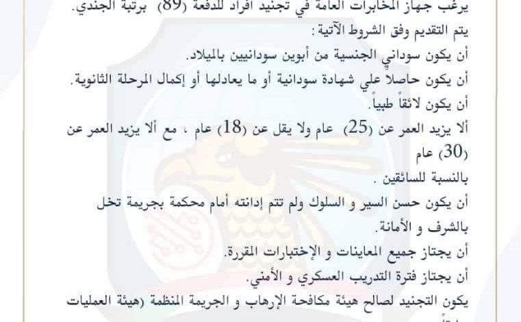 إعلان تجنيد يرغب جهاز المخابرات العامة في تجنيد أفراد للدفعة (89)