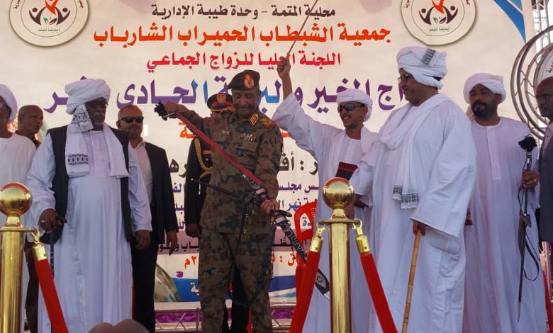 ثمن الفريق اول ركن عبدالفتاح البرهان عبدالرحمن رئيس المجلس السيادي القائد العام للقوات المسلحه ثمن مبادرات العمده عبدالباسط عبدالله جاء ذلك لدي مخاطبته الاحتفال الحاشد بمنطقة الشاطاب بمحلية المتمة بنهر النيل بمناسبة الزواج الجماعي السنوي بالمنطقة والذي يبلغ عدد زيجاته ال130 زيجه في عامه العام الحادي عشر وحيا السيد البرهان المجهودات المقدرة والكبيرة للعمده عبدالباسط ومبادرته في معالجة كافة قضايا وهموم المنطقة مشيدا بمشروع الزواج الجماعي داعيا لضرورة تعميمه علي جميع المناطق بالبلاد من اجل تحصين الشباب مؤكدا بان الولاية ظلت تقدم الكثير للوطن بدون من اواذي كولاية وعي وادارك وتحتضن كل من ياوي اليها ويعيش في امن وسلام