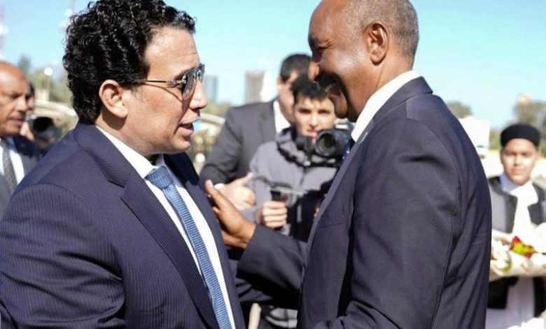 المنفي لدى لقائه البرهان.. لاجئو السودان في ليبيا سيعاملون معاملة الليبيين