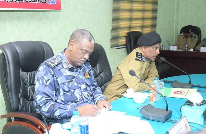 تراس الفريق اول شرطة عنان حامد محمد عمر وزير الداخلية مدير عام قوات الشرطة اليوم الخميس الاجتماع الطارئ للمجلس القومي للدفاع المدني بحضور اعضاء المجلس من ولاة الولايات والوزراء.