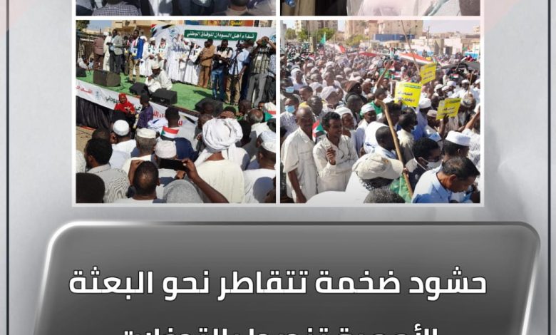 تقاطرت حشود ضخمة السبت نحو مقر البعثة الأممية في السودان( يونتامس) بالخرطوم من مؤيدي ومناصري مبادرة نداد أهل السودان بقيادة الرجل الصوفي الطيب الجد، رفضا للتدخل الأجنبي في شؤون السودان والاتفاق الثنائي.
