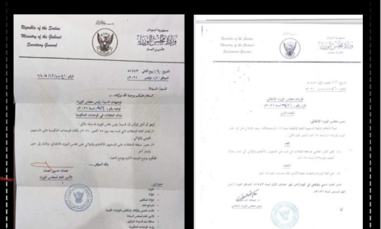 ألغى رئيس الوزراء عبد الله حمدوك قراره الخاص بايقاف كافة التعيينات والتنقلات التي اصدرها قائد الجيش عبد الفتاح البرهان في اكتوبر الماضي. ونص القرار الذي اطلعت عليه المسار نيوز بالغاء قرار سابق بمراجعة التنقلات التي تمت على المستويين الاتحادي والولائي ولذي سبق وأن صدر قرار بشأنها.وكان رئيس الوزراء عبد الله حمدوك قد تعهد بمراجعة كافة قرارات البرهان والصادرة خلال فترة عزله بعد اجراءت أكتوبر.