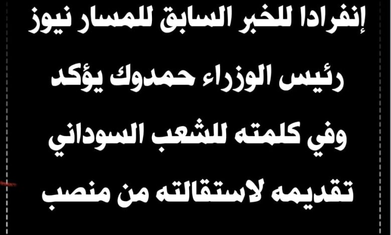 إنفرادا للخبر السابق للمسار نيوز رئيس الوزراء حمدوك يؤكد وفي كلمته للشعب السوداني تقديمه لاستقالته من منصب رئيس الوزراء