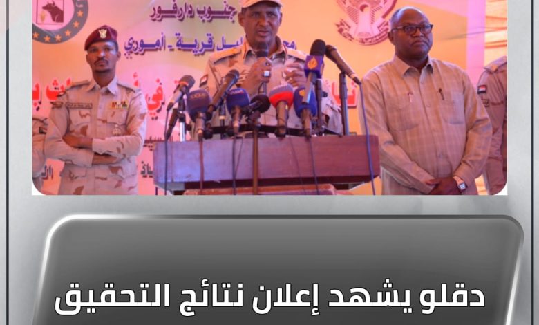 شهد نائب رئيس مجلس السيادة، قائد قوات الدعم السريع، الفريق أول محمد حمدان دقلو، اليوم بمنطقة اموري بولاية جنوب دارفور إعلان نتائج التحقيق في احداث محلية بليل التي