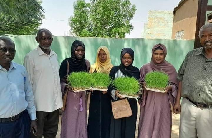 طالبات بكلية الزراعة جامعة أمدرمان الإسلامية قسم المحاصيل ينجحن في إستنبات بذور محصول القمح عن طريق الزراعة المائية فى قوالب من الفلين دون إستخدام أي نوع من التربة تحت إشراف البروفيسور المشارك جمال الدين الطيب.