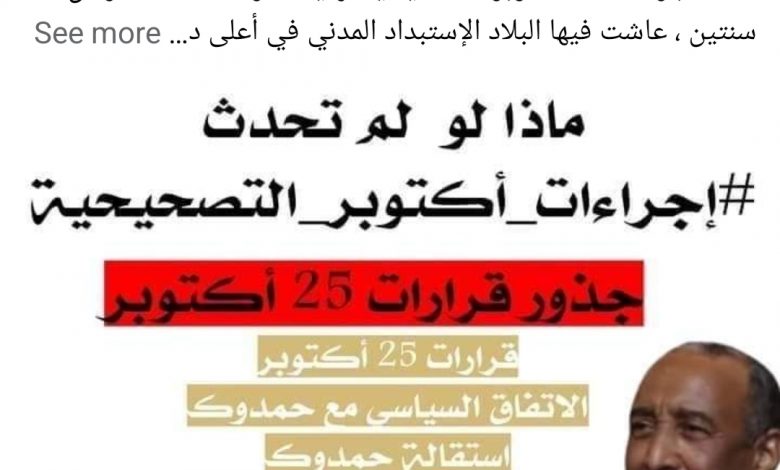 كانت اجراءات 25 أكتوبر التصحيحية نهاية لفترة امتدت لأكثر من سنتين ، عاشت فيها البلاد الإستبداد المدني في أعلى درجاته ، وقد تمت تلك الإجراءات بتوافق تام بين مكونات القوات المسلحة ورئيس الوزراء السابق عبد الله حمدوك التي ضاق من تسلط مكونات الحرية والتغيير وخلافاتها الداخلية وأطماع قادتها الذاتية وتعدد ولاءاتهم وتنوع مصالحهم ، فصار حمدوك في الفترة التي سبقت قرارات أكتوبر أكثر قربا من المؤسسة العسكرية ، وقد طرح القائد العام للجيش الفريق أول البرهان خيارين أمام حمدوك ، أن يقوم حمدوك بحل حكومته ويستبدلها بحكومة كفاءات وفق ما نصت عليه الوثيقة الدستورية وسيدعمه الجيش من باب مسؤولية الشراكة ، أو أن يحل البرهان الحكومة كاملة ويعيد تشكيلها برئاسة حمدوك من جديد فاختار حمدوك الخيار الثاني ، فتم حل الحكومة وعزل أعضاء مجلس السيادة المدنيين وحبسهم على ذمة قضايا وتجاوزات ادارية ومالية عديدة .
