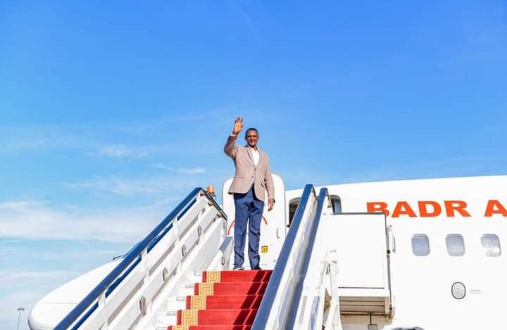 وكان في وداعه بمطار الخرطوم الأمين العام لمجلس السيادة الفريق الركن محمد الغالي علي يوسف.