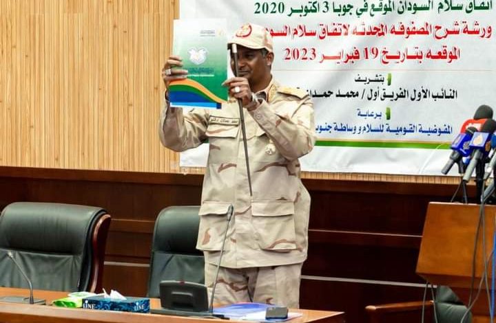 أكد نائب رئيس مجلس السيادة، الفريق أول #محمدحمداندقلو، التزام الحكومة بتنفيذ اتفاق جوبا لسلام السودان، وفقاً للمصفوفة المحدّثة، والالتزام بكافة التوصيات التي خلصت إليها ورشة جوبا.