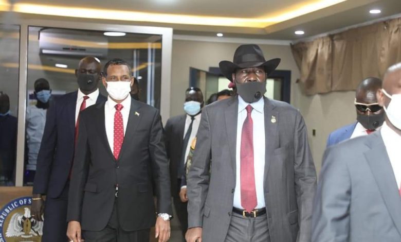 ورحب رئيس جمهورية جنوب السودان سلفاكير ميارديت، بزيارة السيد نائب رئيس مجلس السيادة الى جوبا، ومشاركته في اجتماع مجلس الرئاسة في بلده الثاني جنوب السودان، مشيراً الى الجهود الكبيرة التي ظل يضطلع بها الفريق أول دقلو في متابعة تنفيذ اتفاق السلام في جنوب السودان بوصف السودان ضامناً للاتفاق.
