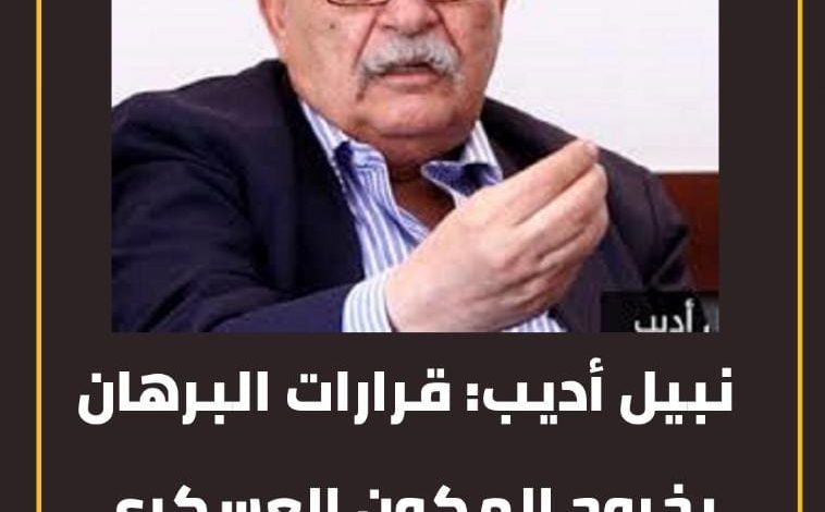 نبيل أديب : قرارات البرهان بخروج المكون العسكري تصب في اتجاه أنهاء الأزمة.