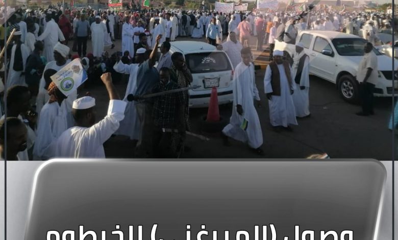 وكان في استقبال (الميرغني) حشود ضخمة من السودانيين الذين تدافعو نحو مطار الخرطوم منذ منتصف اليوم لاستقبال الميرغني وسط هتافات ولافتات وطنية